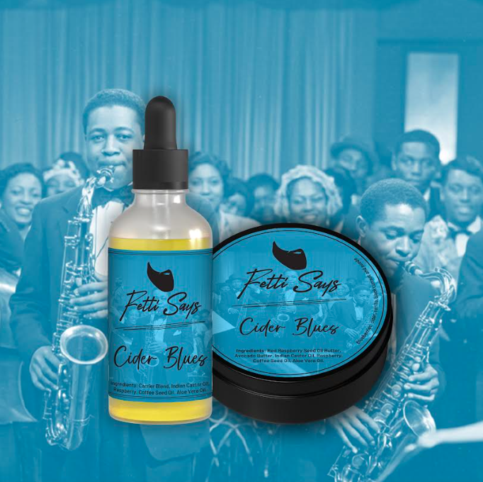 Fetti says Cider Blues -carrier Blend – Indian Castor oil , Raspberry seed oil , coffee seed oil , aloe Vera oil .